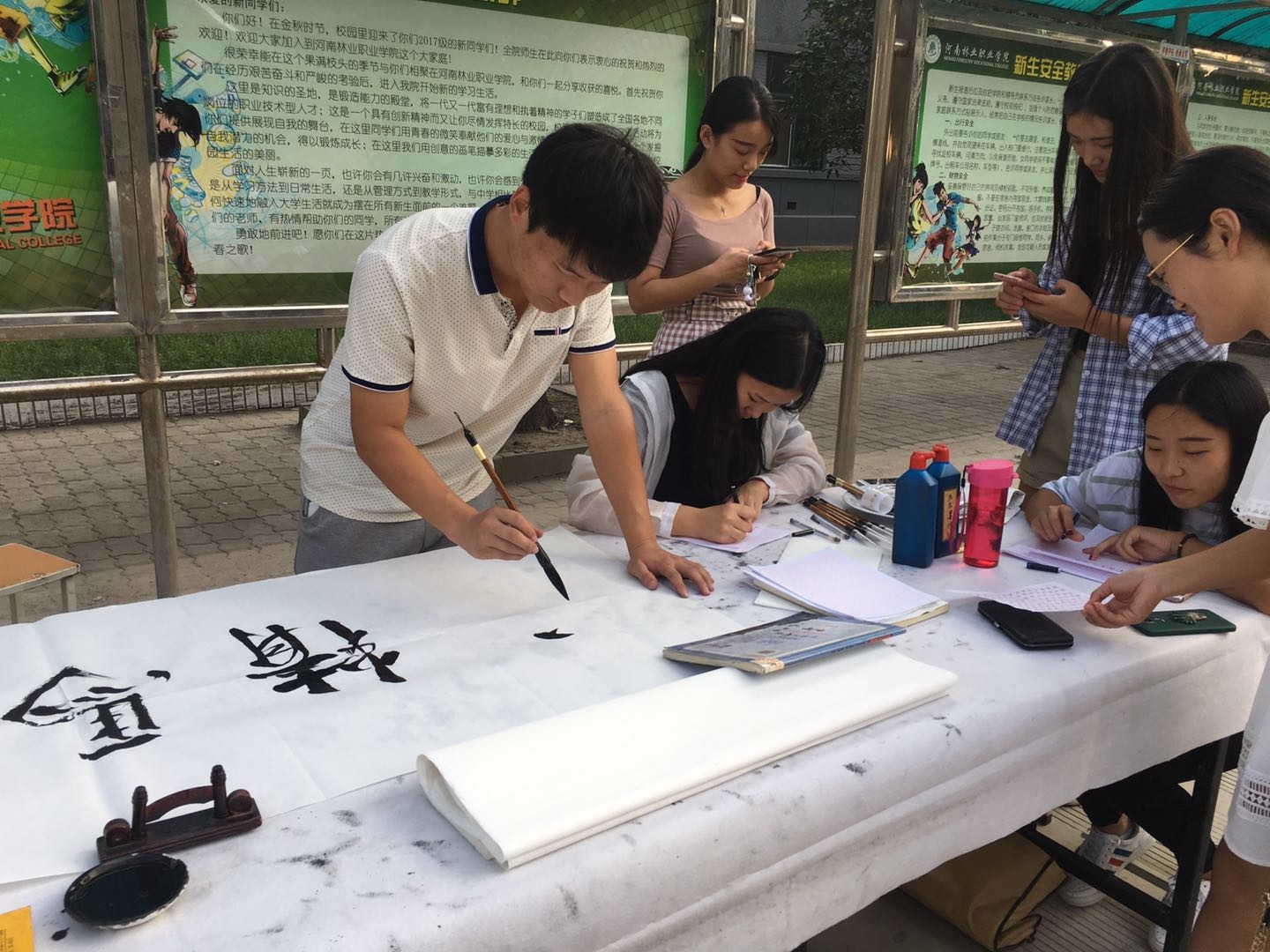 为进一步增强全院师生的语言规范意识和推广普通话的参与意识, 推动学院语言文字工作深入发展,9月21日16:50,基础教育部联合林苑书画社在学生中开展“写规范字,做文明人”规范汉字书写活动,在院广场报栏处举办书法比赛。本次比赛参赛形式灵活,内容多样,采取现场比赛形式,分为硬笔和毛笔两组同时进行。