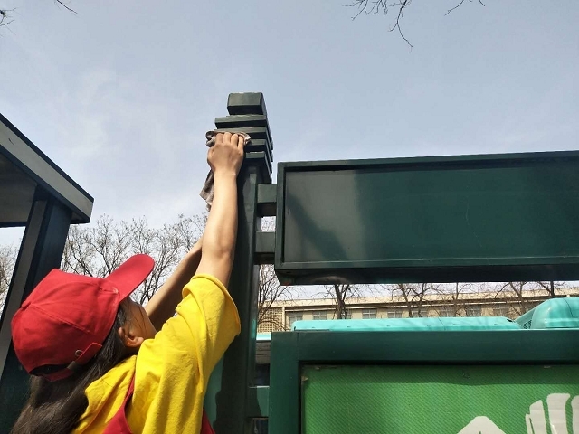 为推动学雷锋活动的深入开展,弘扬志愿精神,2018年3月28日,园林系团总支开展了一次清理校门口9路公交站牌志愿活动。