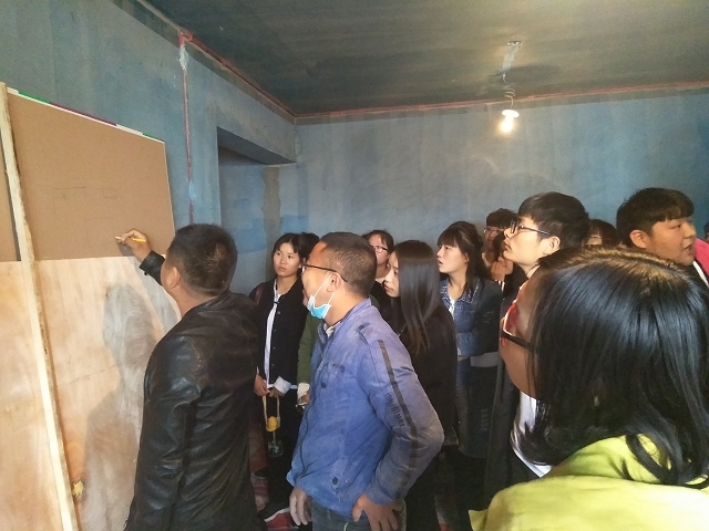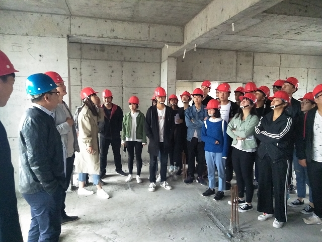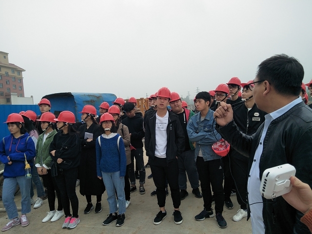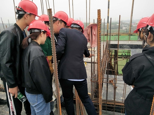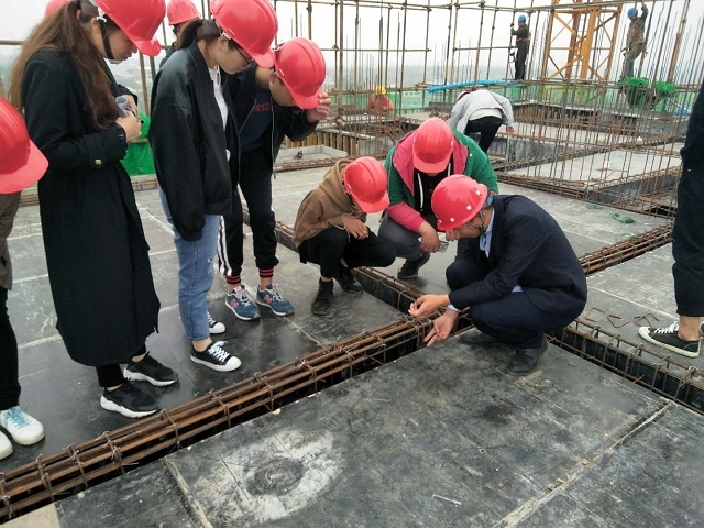洛阳观唐装饰设计有限公司工程部王经理和孟津创宏置业有限公司工程部刘经理热情接待学生,并亲自做项目介绍和安全交底后学生有序进入施工现场。期间分别邀请了在施工现场拥有数十年工作经验的专业工程师们做施工介绍,特别是对房屋建筑基本构造、施工工艺、施工方法、施工实际情况进行详细讲解。此次实习孟津房地产开发公司领导亦非常重视,土建施工参观学习,安全是重中之重。24日上午9点学生进入施工现场之前工程部刘经理已经安排工作人员做好施工现场卫生、加固脚手架等措施保证以良好的施工现场风貌和安全保障积极配合学生实习的顺利进行。