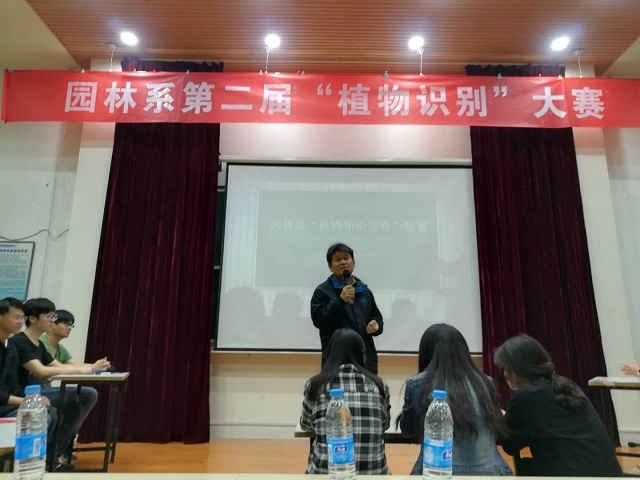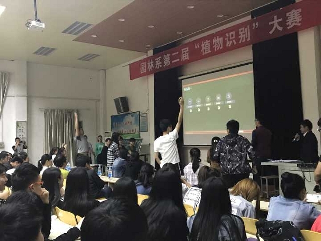 2018年4月26日晚上7:20,园林系举行了第二届“植物识别”大赛复赛。经过初赛的激烈角逐,15名同学脱引而出分5个小组成功进入到了复赛。此次活动由园林系团总支跟学生会一同承办,并邀请系主任陈涛老师、植物教研室主任梁毅莉老师、园林系团总支书记曹晓彩老师以及各年级辅导员汪燕老师、陈瑞林老师、李静老师参加了本次活动。