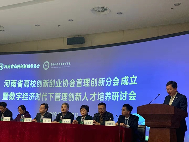 2019年11月9日,我校经贸系会计教研室教师陈晨宇、王彩丽受邀参加河南省高校创新创业协会管理创新分会成立仪式,暨数字经济时代下的管理创新人才培养方案改革研讨会。