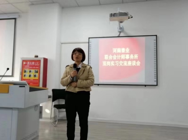 会上,教学主任张淑英发表了热情洋溢的讲话,肯定了大家的教与学的成绩,总结了经验,激励大家成为德才兼备立足社会的有用之人。座谈会还特别邀请了北京畅捷通总部谭兆成经理和郑州胜鑫公司李辉辉总经理发表讲话,他们将企业对会计人才的需求做了介绍,对同学们的就业前景和方向做了精彩的说明,得到了热烈的反响。