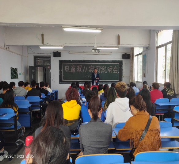 2020年10月23日中午,经贸系召开了电商专业校企合作双11实习说明会。经贸系书记李继东,市营电商教研室主任孙长平,实习指导老师刘晓红、侯杨杨、田甜,电商专业辅导员牛鹿鹿、黄文彬以及通过选拔的48名电商专业学生参加了说明会。