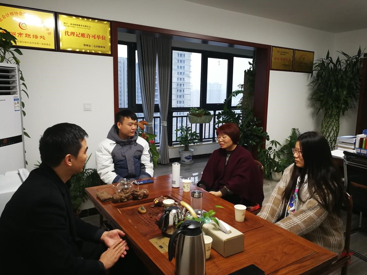 经贸系教学主任张淑英老师与2020年11月25日,到校企合作单位盈泰财税服务有限公司郑州总部进行学习交流。她看望了毕业学生和顶岗实习学生,询问他们在企业的生活、工作情况以及在学校所学知识在社会工作实践中的使用情况,有哪些缺失?并同公司总经理王浩及财务总监赵老师就下一步校企合作深度融合订单班的推进,做了详细沟通和工作框架的制定。