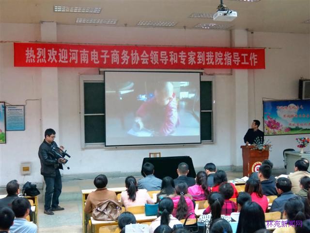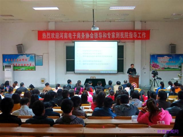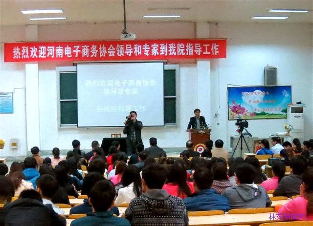 3月21日下午,经贸系电子商务和市场营销专业全体学生在西阶梯教室翘首企盼,期待已久的电子商务知识讲座即将隆重召开。学院教务处行红明老师、经贸系主任李海龙老师、副主任康文涛老师以及经贸系全体教师出席了本次讲座。本次讲座的来宾有洛阳市工信局李岳主任、河南科技大学管理学院郭献强主任、哈他网副总李斌、青峰网络朱登艺经理、招源科技总经理刘杰、恒盛科技张波、EMS总经理秦绪波等洛阳地区电子商务专家。