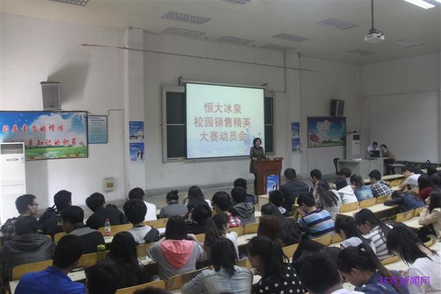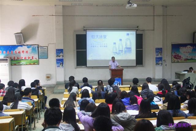 接着,恒大冰泉渠道专员为学生介绍了恒大的产品、销售技巧。恒大冰泉定位为高端矿泉水。为保证其高端性质,在水源地甄选过程中,恒大奔赴原始森林、走进雪山实地考察每一处泉眼品质,最终确定长白山深层矿泉作为恒大冰泉的水源地。 据悉,长白山与欧洲阿尔卑斯山、俄罗斯高加索山一并被公认为世界三大黄金水源地。经世界权威鉴定机构——德国Fresenius检测,鉴定结论为“口感和质量与世界著名品牌矿泉水相近,部分指标更优”。专家称,恒大冰泉矿泉水是经过地下千年深层火山岩磨厉,百年循环,吸附、溶滤而成,属珍稀的火山岩冷泉。其水质中的矿物成分及含量丰富且相对稳定,对多种老年性疾病、慢性疾病等疗效显著。 据悉,为了保证每一滴水均来自长白山,恒大冰泉将坚持“一处水源供全国”模式。在设备方面,引进世界上最先进的克朗斯等生产设备,从净化处理,瓶胚注塑,罐装等各个环节严格把控,全自动化生产,确保每一滴水都安全健康,为广大老百姓提供安全健康养生的天然矿泉水。