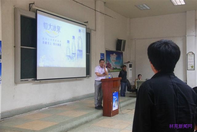 最后,恒大冰泉销售霍总监为师生们介绍了本次大赛的奖励办法并解答了同学们的问题。他说,本次大赛主要是为企业选拔储备干部和销售人才,大赛不向学生收取任何费用,通过海选后,还将赴信阳、焦作参赛,食宿由恒大冰泉全程赞助,全省总成绩前100名将到长白山或阿尔比斯山旅游。预祝林职院的学生能在这次比赛中脱颖而出。