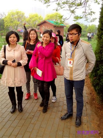 2014年4月12日上午9点,经贸系二十名教师在副主任康文涛老师的带领下,来到位于邙山上的国家牡丹园,调研五年制高职市场营销12-3班的实习情况。