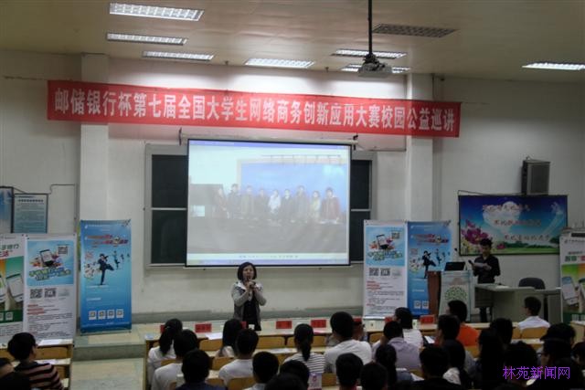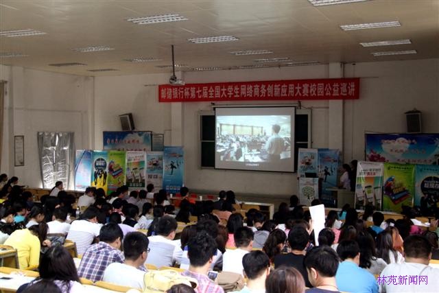 2014年5月8日下午三点,由工业和信息化部指导、教育部支持、中国互联网协会主办、中国邮政储蓄银行主协办的全国性大学生互联网公益赛事——“邮储银行杯第七届全国大学生网络商务创新应用大赛”走进河南校园公益巡讲活动启动仪式在我河南林业职业学院办公楼西阶梯教室隆重举行。