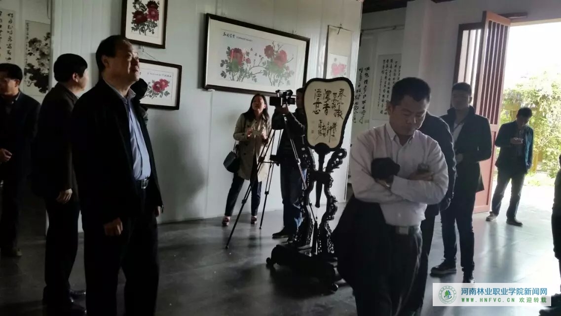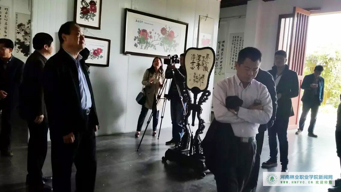 下图为洛阳市委领导在观赏“牡丹真花”艺术品。