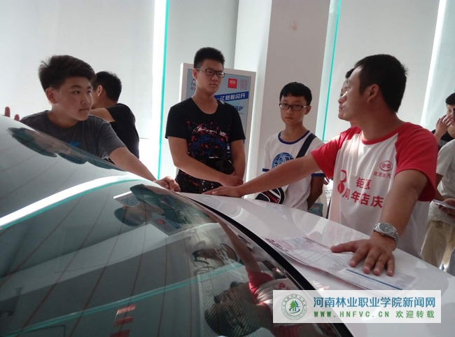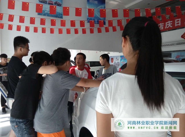 系部活动负责人安排周详、组织有序,在确保学生安全的情况下,保证参观效果。参观前,任课教师给学生们分配了三个参观任务,让学生们带着问题,有目的有方向的去参观,在实地体验中寻找答案。15级新生先后参观了4S店的销售大厅、售后接待大厅和售后服务车间,实地了解了4S的经营模式、维修过程、客户接待、销售技巧等应注意的问题等。在参观过程中,整洁的销售环境和业务员娴熟的销售技能给学生们留下了深刻的印象。