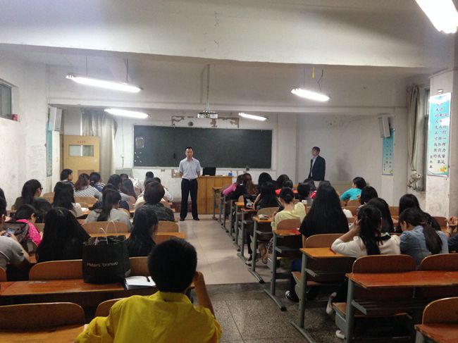 在2015年9月22日下午,经贸系会计班三年级学生齐聚教学楼1201教室,参加由中国银河证券组织的“中国银河杯”金融知识讲座。