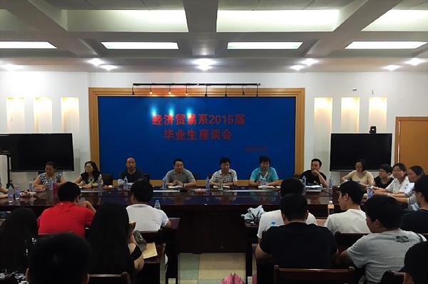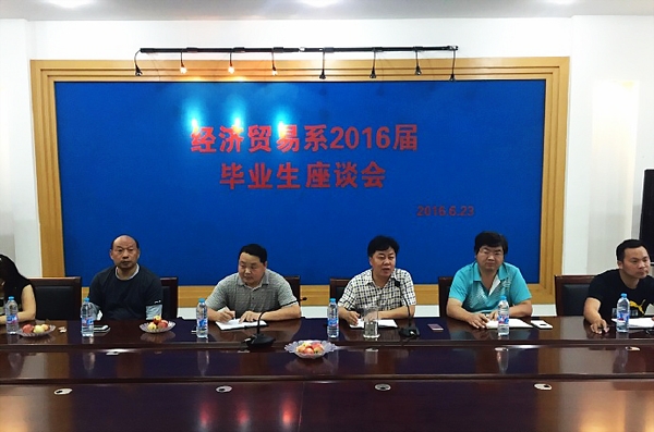 2016年6月23日下午3点半,经济贸易系2016届毕业生座谈会在第三会议室召开。学院副院长刘耀玺、教务处处长行红明、经济贸易系主任李海龙、经济贸易系党支部书记李继东、经济贸易系副主任张淑英等老师参加了本次座谈会。座谈会由李海龙主任主持。