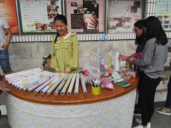 此次“商贸周”活动为期一周的时间,在第一届的基础上办的更加热闹非凡。从前期的市场调研、策划案的撰写到寻找进货渠道,再到最后方案的实施,同学们表现出了极大的兴趣与激情。卖的商品也是琳琅满目,有零食、水果、键盘、壁纸以及各种生活用品,吸引了不少老师和学生前来围观和购买。