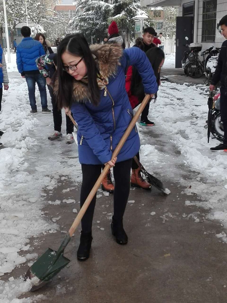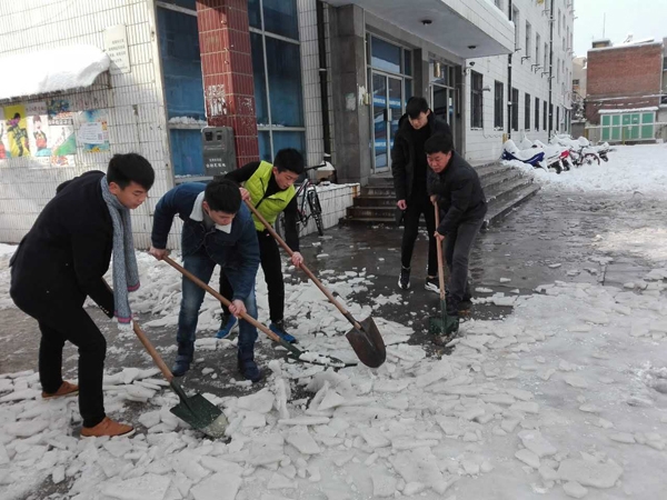 11月23日上午一大早,经贸系全体支部党员和师生就在支部书记李书记的带领下在规定的区域内开始了清扫,由于工具太少,大家有的用脚踢,有的用断了的树枝作为清扫工具。虽然天气很冷路面湿滑,但是同志、同学们依然干的热火朝天,积雪湿透了大家的鞋袜,也凝聚了大家服务他人,奉献自己的助人为乐精神。这次活动充分发挥了基层党支部的战斗堡垒作用,充分发挥了学生干部的先锋模范作用。经过近两个多小时的,党员及师生共同参与,把责任区的道路积雪清理的干干净净。