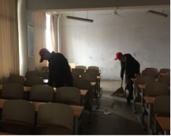 2017年3月15日中午12点30经贸系团总支全体成员在综合楼开展了主题为“倡导公德,美化教室”志愿活动。