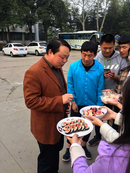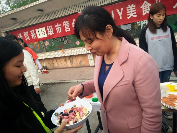同学们有条不稳的进行着比赛大家默契配合,充分发挥了团结合作,比赛格外有序,轻松有趣,不一会儿同学的都依次完成,创作出精美的寿司和蔬果沙拉,随即邀请副院长刘耀玺老师,经贸系主任兼书记李继东老师,人事科科长田爱琴老师,车电系主任李瑞华老师,生态系书记李兴平老师,信艺系书记刘艳花老师,教务处刘光武老师等学院领导老师品尝审阅本次活动。