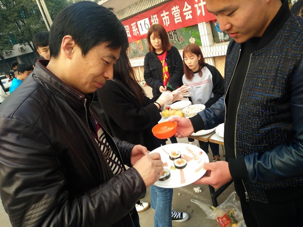 阳光明媚,春暖花开。为了培养大学生的创作力和团队协作能力,于4月6日下午4点钟在班主任石慧老师的带领下高市营1451和会计1451班,在办公楼前举办了“DIY”美食大赛。