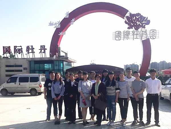 2017年4月28日下午经贸系教学主任张淑英老师、教学秘书石珺老师、辅导员班主任王东岳老师、石慧老师到国际牡丹园看望在此实习的高职市场营销专业15级学生。