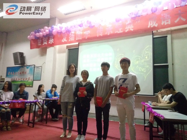 成语是中华文化的高度凝练,为激发同学们学用成语、积累成语的兴趣,感悟汉语言文化的深厚智慧,2017年5月15日晚7:30,经贸系团总支在西阶梯举办“发扬国学、传承经典”成语大赛,经贸系团总支书记韩奕琳、盛夏瑜老师、黄文彬老师和牛露老师参加此次活动。