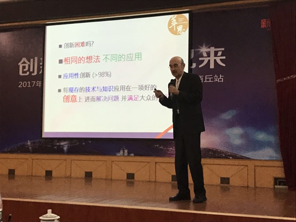 主题报告会上,天津职业技术师范大学原校长、党委书记、应用技术大学(学院)联盟理事长孟国庆,做“应用技术人才培养的几点思考”报告;商丘师范学校司林胜校长,做“深化课程教学范式改革、构建应用型人才培养微观基础”;新道科技股份有限公司周前进副总裁,做“科技驱动人才培养、创新成就未来教育”;台湾中原大学 沙永杰教授,做“从众筹成功案例中探讨创新创业可行的方向和做法”。沙教授的报告风趣幽默,给与会的所有人提供了创新、教改、课堂设计的新思路。