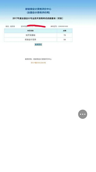 2017年度全国会计专业(初级)技术资格通过学生名单(26人):