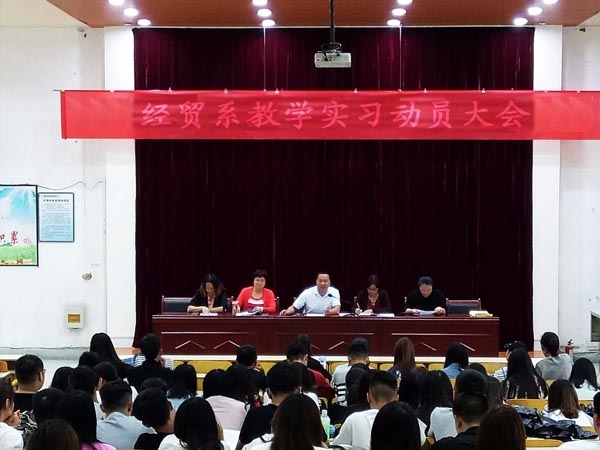 2017年09月05日下午4:40在西阶梯,经贸系召开教学实习动员大会。经贸系高职电子商务15-1.2.3班的学生齐聚西阶梯教室。经贸系书记李继东老师,经贸系教学主任张淑英老师,及市营电商的部分老师参加了本次大会。