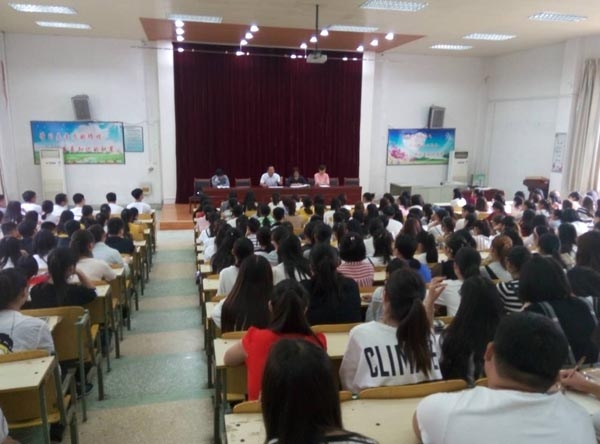 2017年9月11日上午10点在西阶梯,经贸系召开新生入学见面会。经贸系17级高职新生齐聚西阶梯教室。经贸系书记李继东老师,经贸系教学主任张淑英老师,经贸系团总支书记韩奕琳老师,经贸系高职新生辅导员段新红和王东岳老师参加了本次大会。