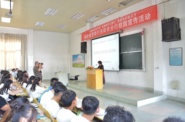 为培养新生安全意识,防范金融诈骗,9月12日下午,经贸系邀请邮政储蓄银行洛阳市分行,来校为400名新生做了一场生动而富有知识性的“防金融诈骗讲座”。