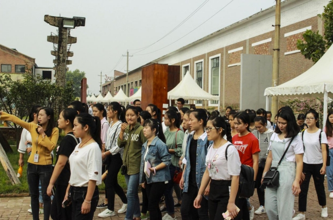 八里唐文创小镇以前瞻性的时尚设计理念,并结合洛阳九朝古都的历史文化基础,以文化、艺术、音乐、运动为主题,致力打造具有洛阳本土特色,集理想办公、创意孵化、文化交流、旅游集散、运动休闲于一体的文化创意平台。建成后将成为河南省首个大型文化艺术创意园区。学生首次踏进这个艺术与文化的集聚区,他们全程认真的聆听讲解员的介绍,时而用手机记录着满怀对这里艺术氛围的向往。