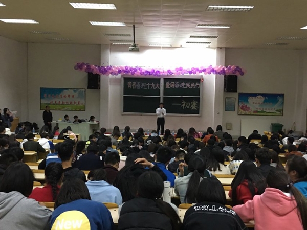为庆祝党的十九大胜利召开,歌颂党的十八大以来取得的辉煌成就,大力弘扬爱国主义精神,培育和践行社会主义核心价值观,丰富和活跃同学们的文化生活,加强同学们的交流沟通。11月15日晚上,经贸系团总支在东阶梯举行了主题为“青春喜迎十九大,爱国奋进我先行”的诗歌朗诵比赛活动。