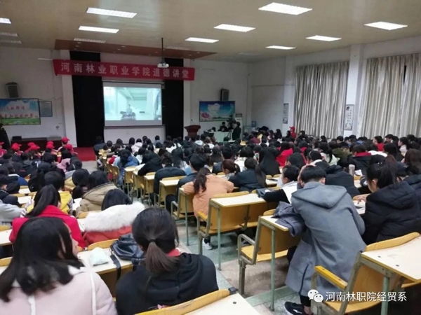 2017年11月20日晚,由经贸系团总支主办以“敬老爱老”为主题的道德讲堂,在西街梯正式开讲。出席本次活动的老师有经贸系党支部书记李继东老师,党办孙玉珩老师,经贸系团总支书记王东岳老师,生态系团总支书记赵迪老师和车电系团总支书记张宁老师。经贸系全体班主任辅导员也参加了此次活动。