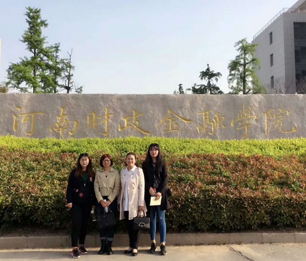 (我校经贸系老师在河南财政金融学院校门口合影留念)