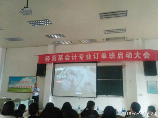 6月9日上午,会计专业与智游集团订单班启动大会在我院东阶梯教室举行。经贸系副主任张淑英老师、会计教研室主任金鑫老师、会计教研室全体老师及会计专业2016级全体学生共同聆听了智游集团徐光辉经理给我们带来的精彩宣讲。