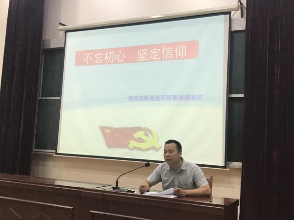 2018年6月13日中午12点30分,在西阶梯教室,经贸系支部书记李继东老师响应“党的创新理论万场宣讲进高校”的号召,为经贸系申请入党的同学,上了一堂党课。