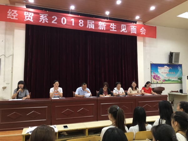 9月10日上午,经贸系在西街梯举行隆重的新生见面大会,党支部书记李继东、副主任张淑英、团总支书记王东岳、各教研室主任、各专业辅导员以及教师代表牛永超出席了大会,会议由教学秘书石珺主持。