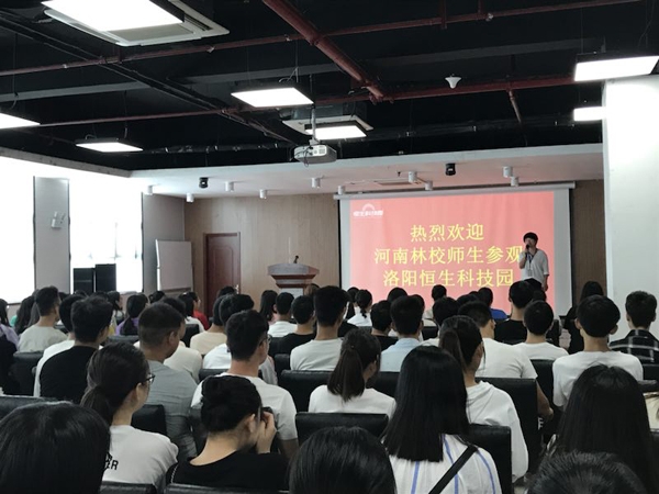 恒生科技园的朱经理热情的接待了同学们,并为同学们做了简要的科技园介绍,科技园总建筑面积达40万平方米,投资近10亿元人民币,在产品形态方面以低层独栋办公为主,倡导“双生态绿色园区”和“花园办公、绿地办公”的发展理念,充分运用生态理念将园区建设成为一个适合创新型中小企业成长发展的一流科学园区,同时引进一流的高科技企业未来将会成为洛阳创新产业的核心园地,目前入住企业300余家。