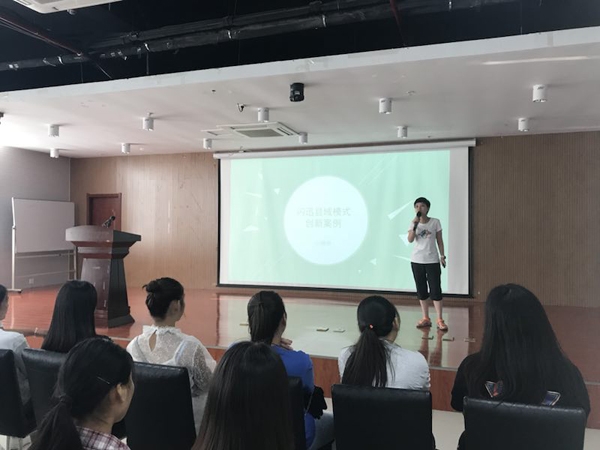 接下来由园内3家知名企业为同学们做了详细汇报。首先是中企动力的胡经理,她的报告围绕中企动力展开,为同学们讲述了许多电商相关基础知识的拓展,如域名的建设、平台的推广,目前国内外相关电商企业现状的问题。