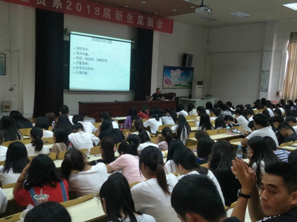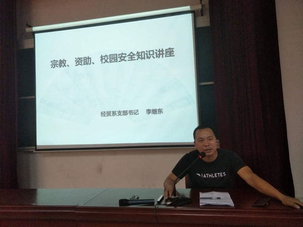 经贸系书记李继东老师为18级新生开展关于宗教、资助、校园安全的知识讲座