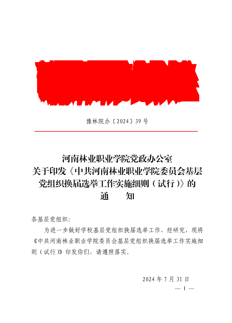 关于印发《中共河南林业职业学院委员会基层党组织换届选举工作实施细则(试行)》的通知 作者:组织部 来源:组织部 发布时间:2024-08-14 09:33:31 浏览次数: 次 【字体:小 大】 终审:李成良 分享到: 【打印正文】