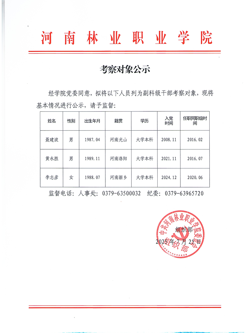 副科级考察对象公示