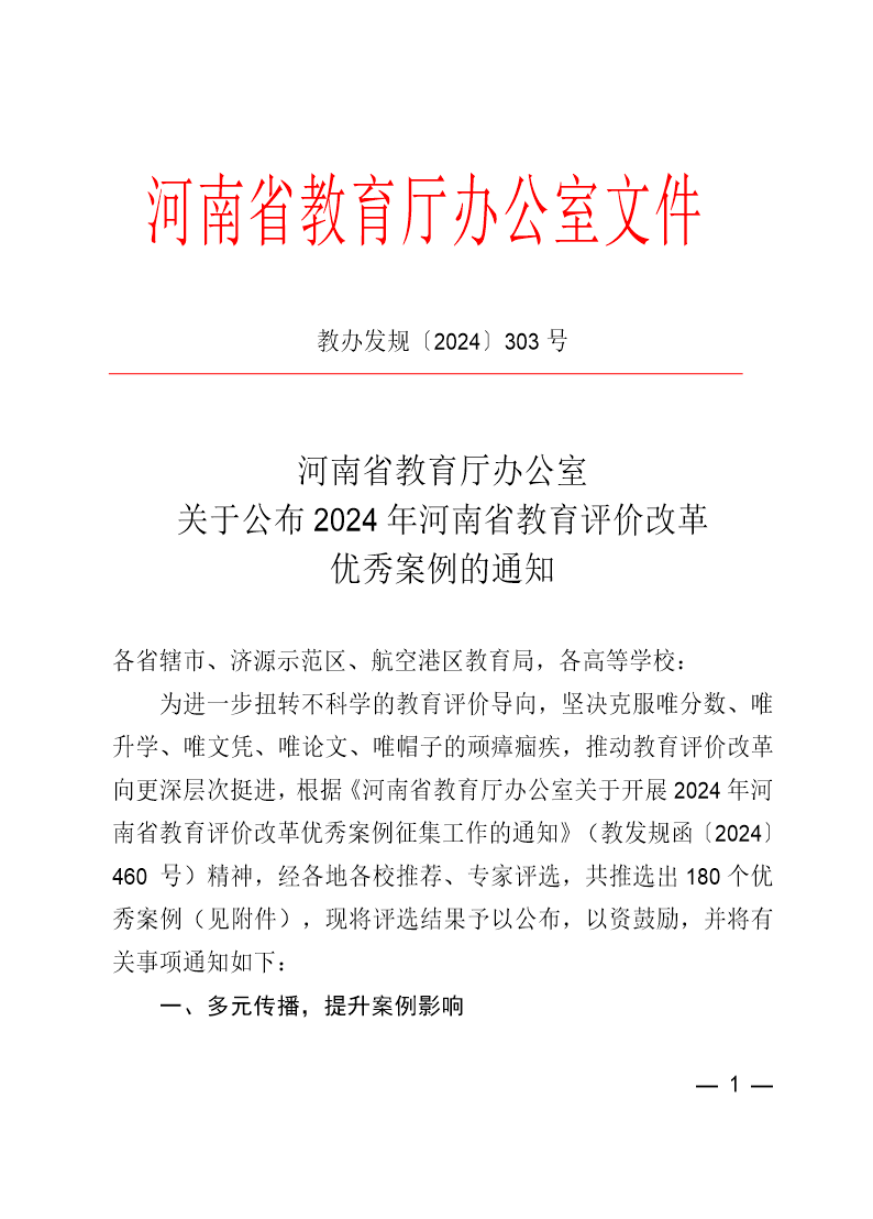 学生处获2024年河南省教育评价改革优秀案例二等奖