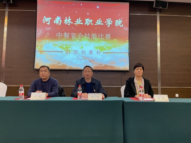 2020年12月21日下午,由我院生态工程与旅游系主办的“钼都利豪杯”中餐宴会技能比赛,在洛阳市钼都利豪国际饭店国际会议中心隆重举行。河南林业职业学院副院长刘宗利,生态工程与旅游系主任王建,莅临现场观看比赛并为获奖选手颁奖。