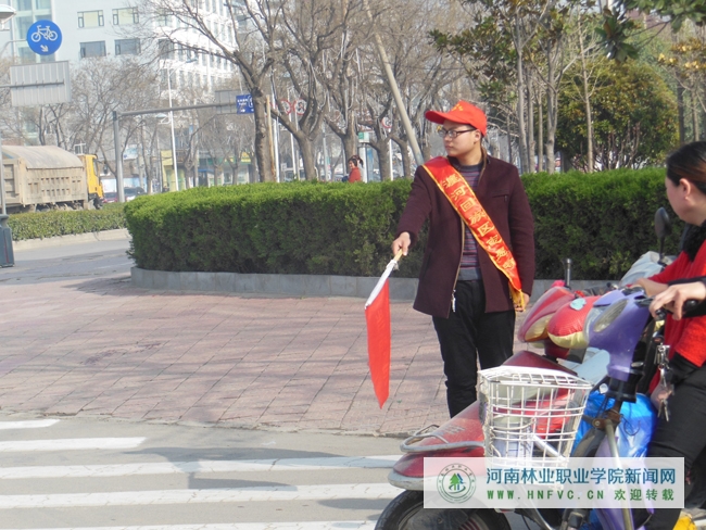 文明交通,安全你我。协助指挥交通,并为路人指路,让同学们真正体会到了和谐社会靠大家,在指挥的同时帮助过路行人,他人的每一句谢谢,都让志愿者们感到快乐。