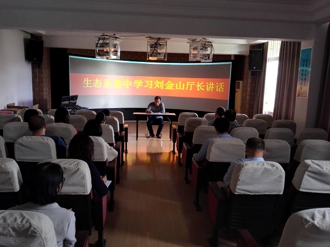 会上,王主任带领大家学习了《河南省林业厅厅长刘金山同志在全省森林抚育工作现场会上的讲话》。重点学习了新时期林业生态建设面临重大发展机遇、新时期林业生态建设的总体思路、下一阶段林业建设重点工作安排三个方面的内容。王主任强调,我们要在习近平新时代中国特色社会主义思想的指导下,在林业厅党组的部署和要求下,全体教职工要认真宣传、贯彻践行习近平总书记提出的“两山论”,要勇于担当,扎实工作,为全面提升新时期林业建设水平,为生态文明和新时代美丽河南建设作出自己应有的贡献。