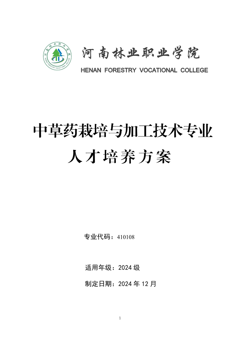 2024级中草药栽培与加工专业人才培养方案