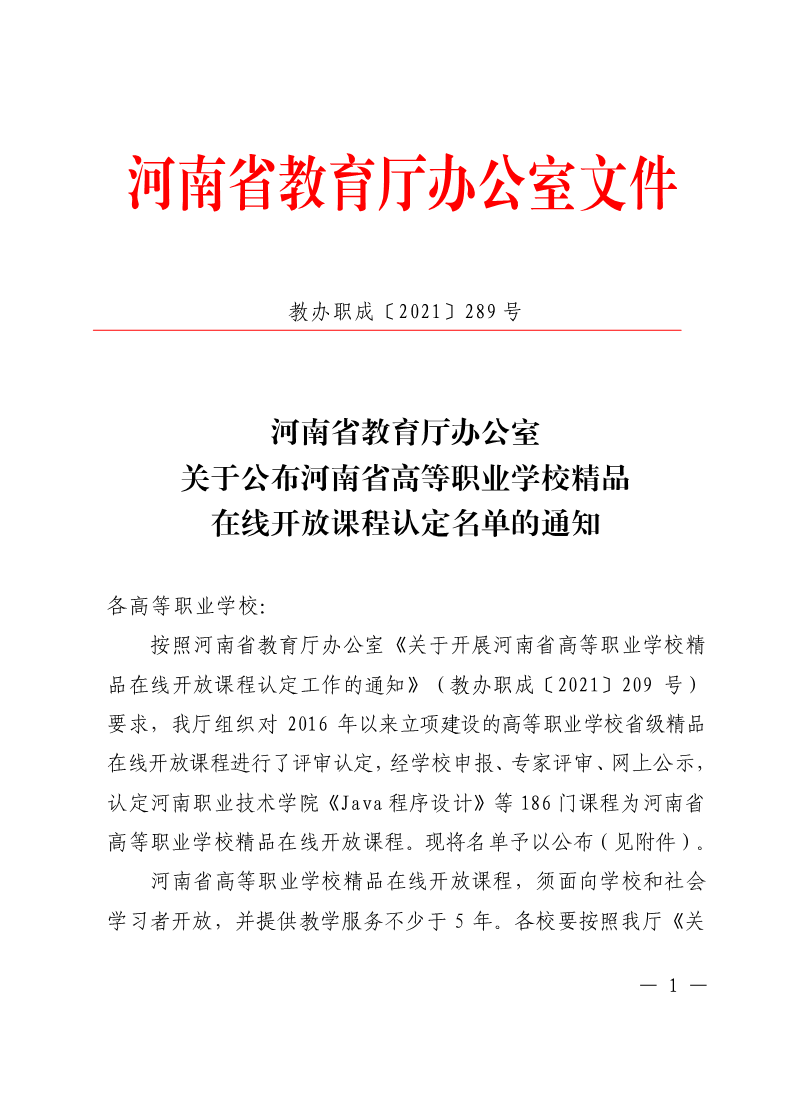 我院课程入选河南省高等职业学校精品在线开放课程拟认定名单
