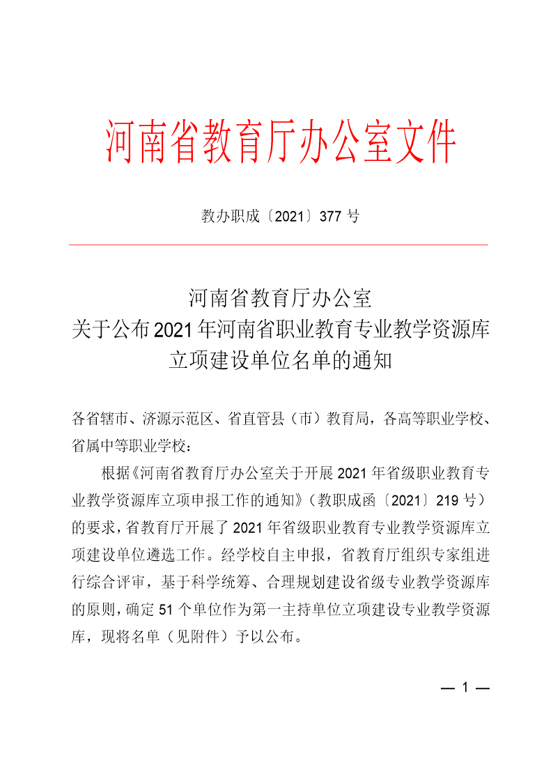 我院林业信息技术应用入选2021 年河南省职业教育专业教学资源库立项建设单位名单