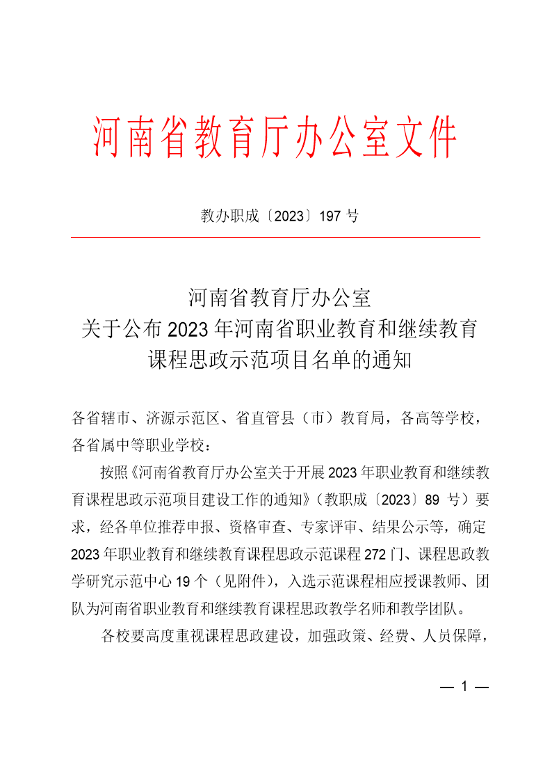 我院两门课程获2023年河南省职业教育和继续教育课程思政示范项目