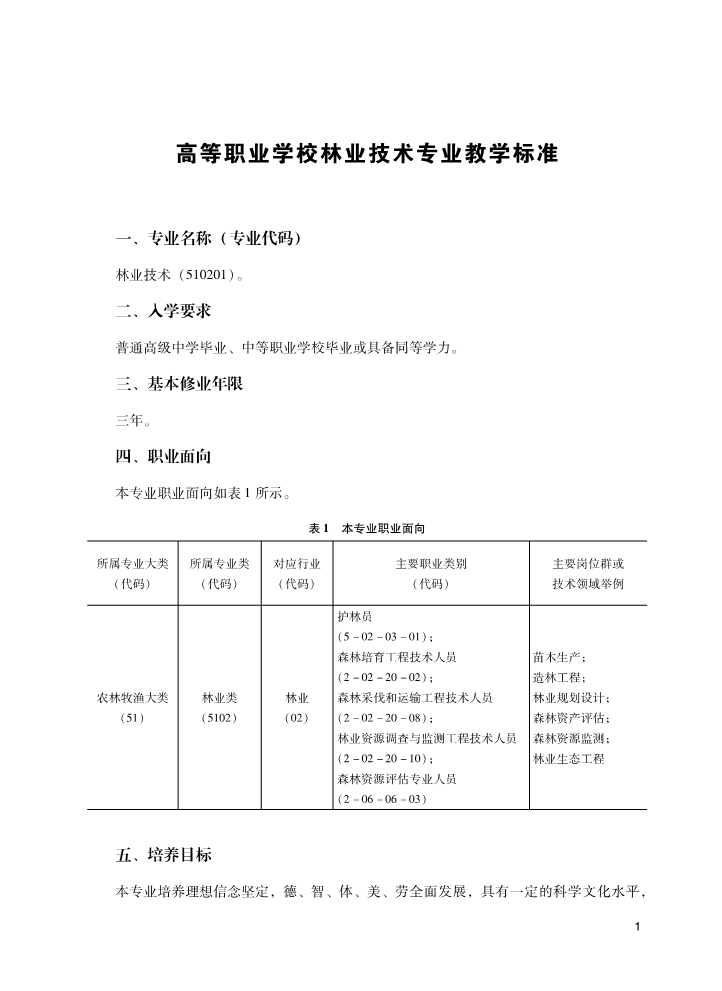 高等职业学校林业技术专业教学标准(2019)